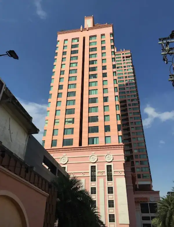 プロンポンのスクンビット偶数側に位置している、ピンク色で目立つ高級コンドミニアムです。
