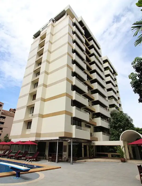 BTSプロンポンから徒歩5分ほどの一等地にありながら、広大な敷地を有する老舗アパートで、スクンビット39だけでなく41からも出入り可能です。