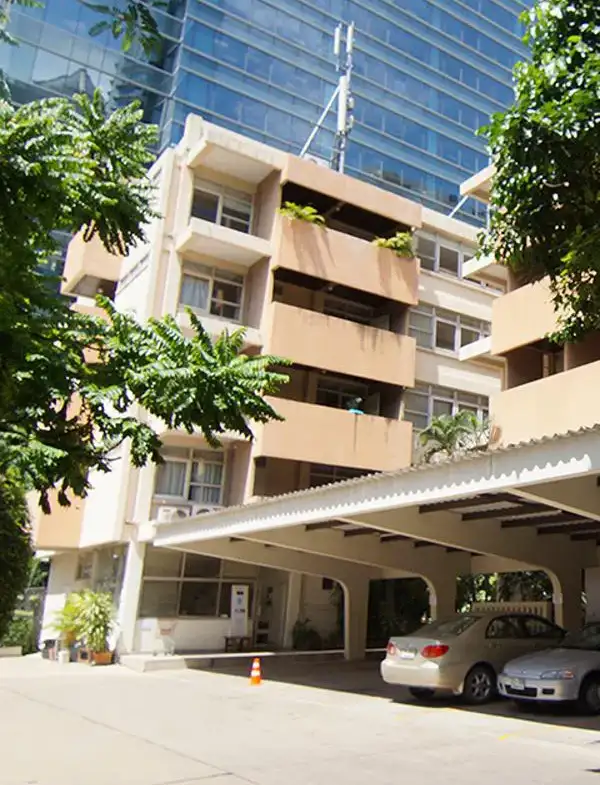 趣のあるワイヤレス通りに佇む隠れ家的アパート。敷地内に一歩足を踏み入れれば、そこはまるでタイの伝統的なリゾート風景。お部屋は多少古さを感じさせますが、内装や調度品からは、古き良きタイの雰囲気が感じられます。